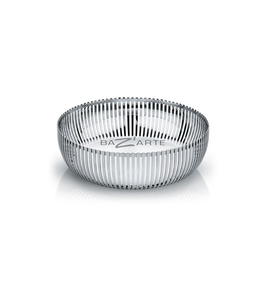 Pierced basket in polished stainless steel - Diameter 23cm. Basket stainless steel 18/10. The basket, created by Pierre Charpin, by its evidence of use, is an essential object of our domestic environment in the kitchen and living room, a presence that brings us back to a distant memory, the old pre-industrial trays "to gallery "10th century.